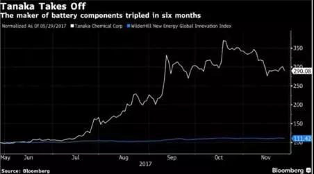 隨著電池中金屬利用的需求增加,包括日本的田中化學(xué)公司(Tanaka Chemical)等將受益,這些公司主要是生產(chǎn)和銷(xiāo)售電池存儲(chǔ)設(shè)備的組件。
